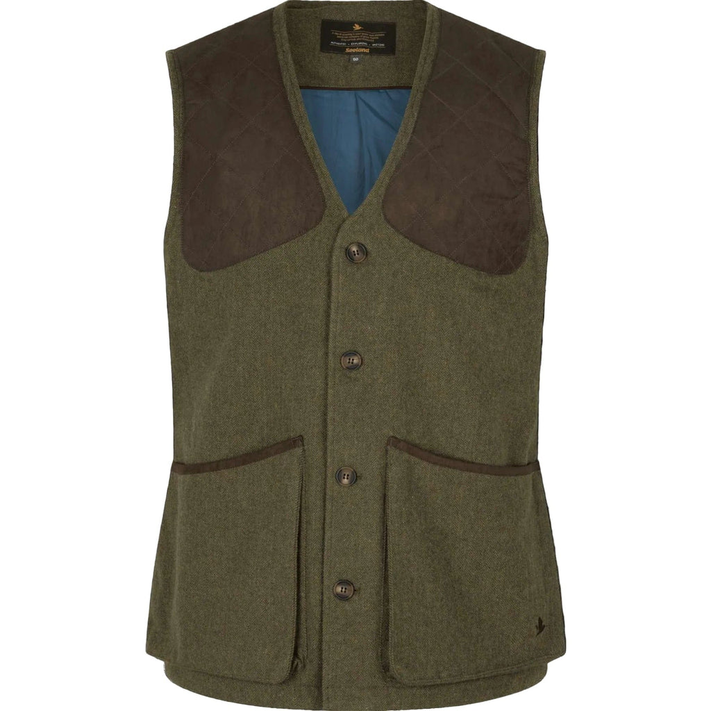 Die Hillside Weste für Herren vereint traditionelle britische Schießsportästhetik mit moderner Funktionalität. Gefertigt aus einer hochwertigen 40 % Wolle / 60 % Polyester-Mischung bietet sie nicht nur eine stilvolle Optik, sondern auch Strapazierfähigkeit und angenehmen Tragekomfort. Die gesteppten Schulterpartien sind mit Wildlederimitatbesatz versehen und unterstreichen den klassischen Charakter der Weste.